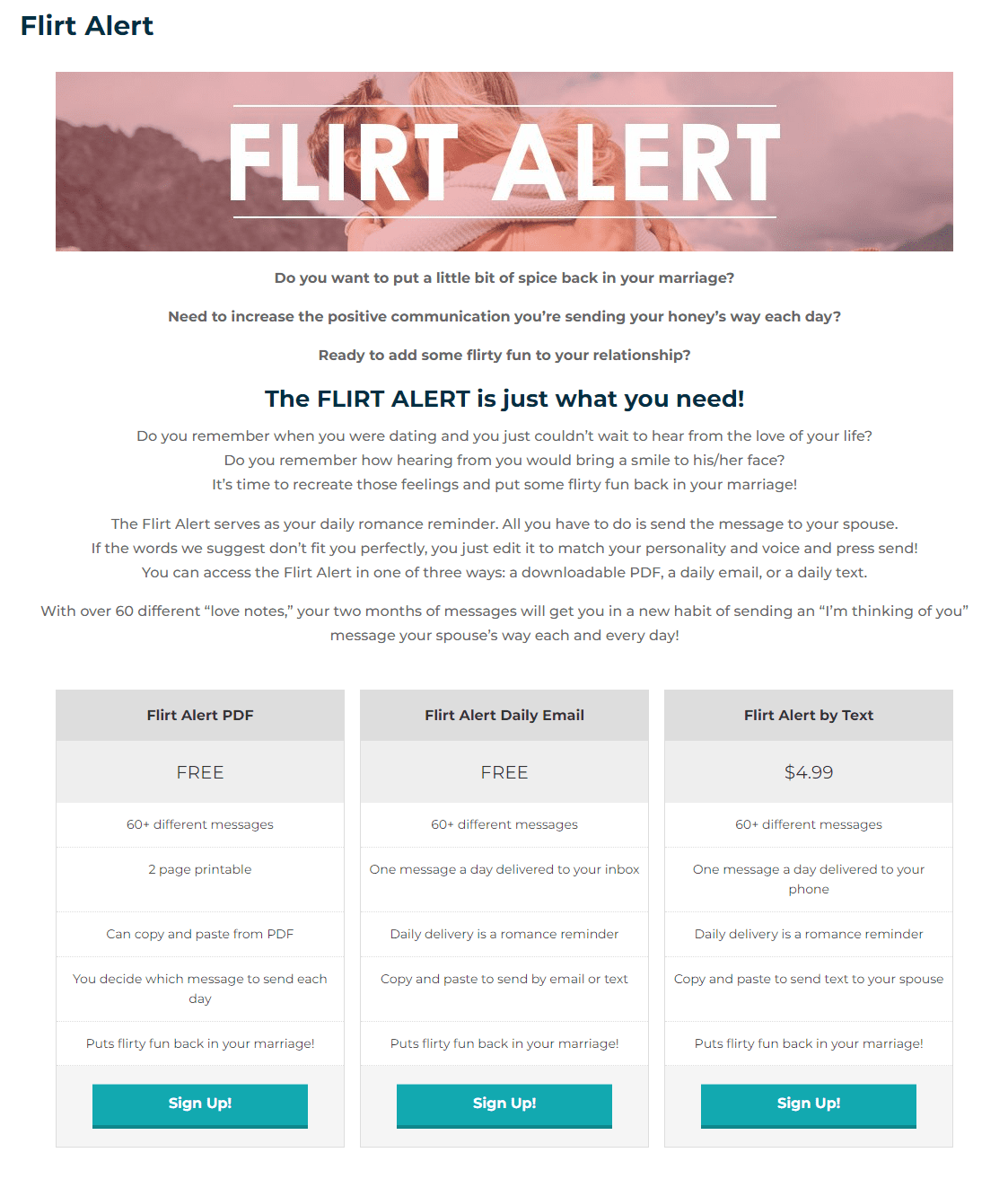 For example, I redid this Flirt Alert landing page to be more visually compelling, instantly understandable, and desirable. It worked, bringing in new email subscribers for an average of $0.74 each.